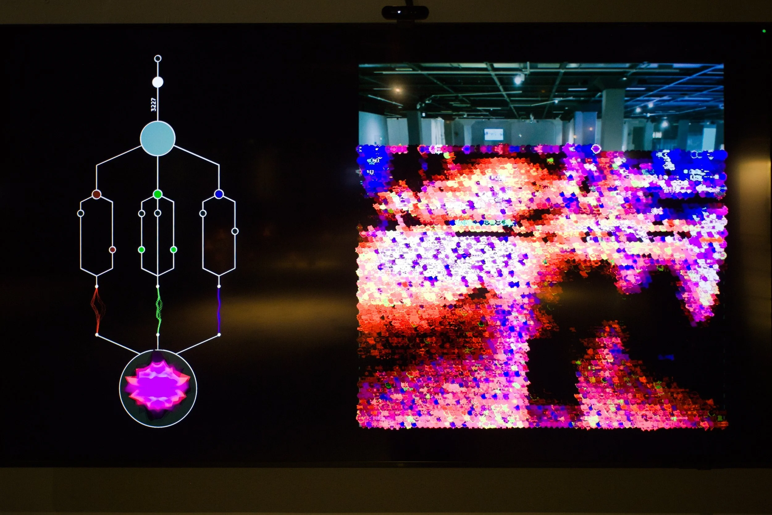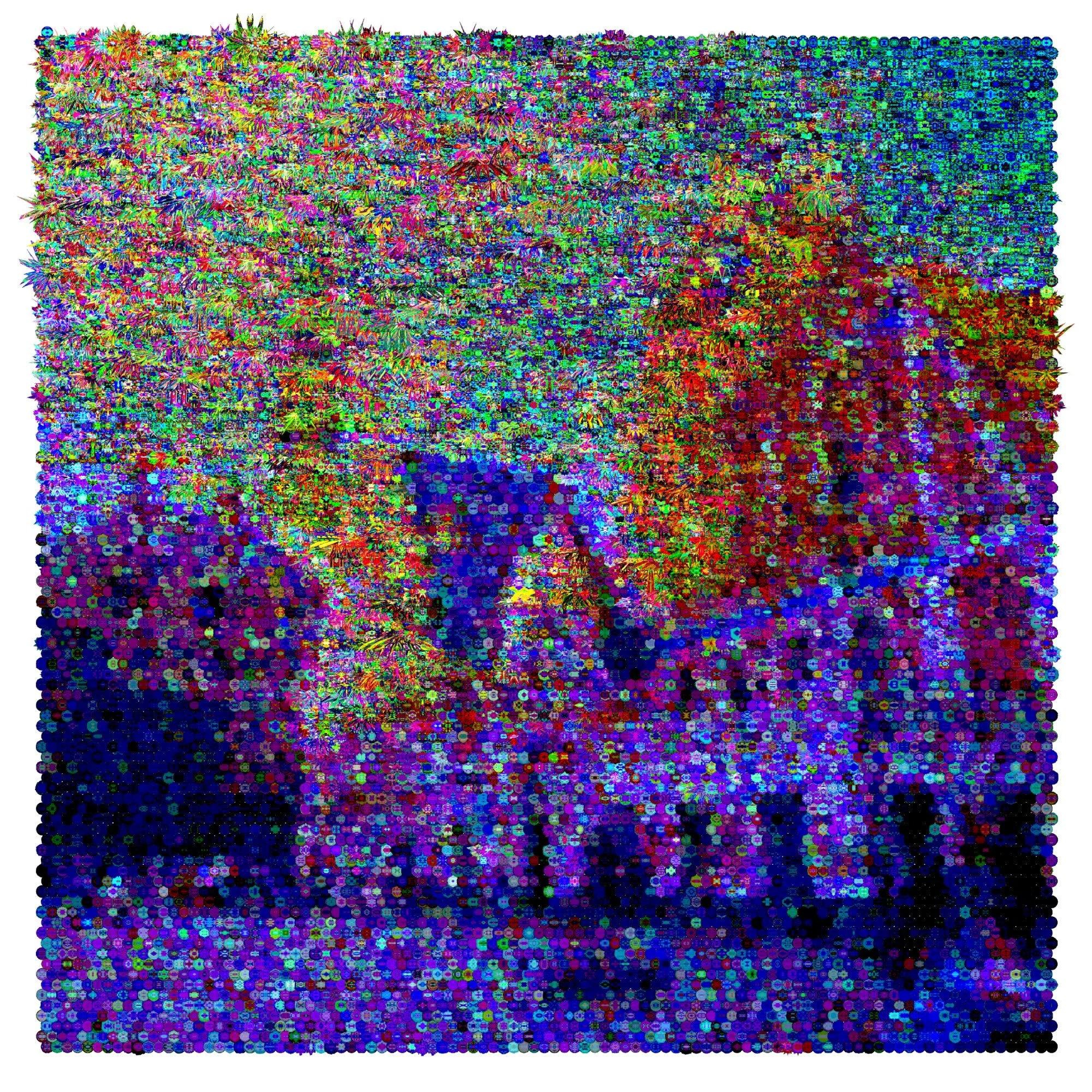 A work from a series that examines the sonification of images and the visualization of sound, using the possibilities of 3D environments.