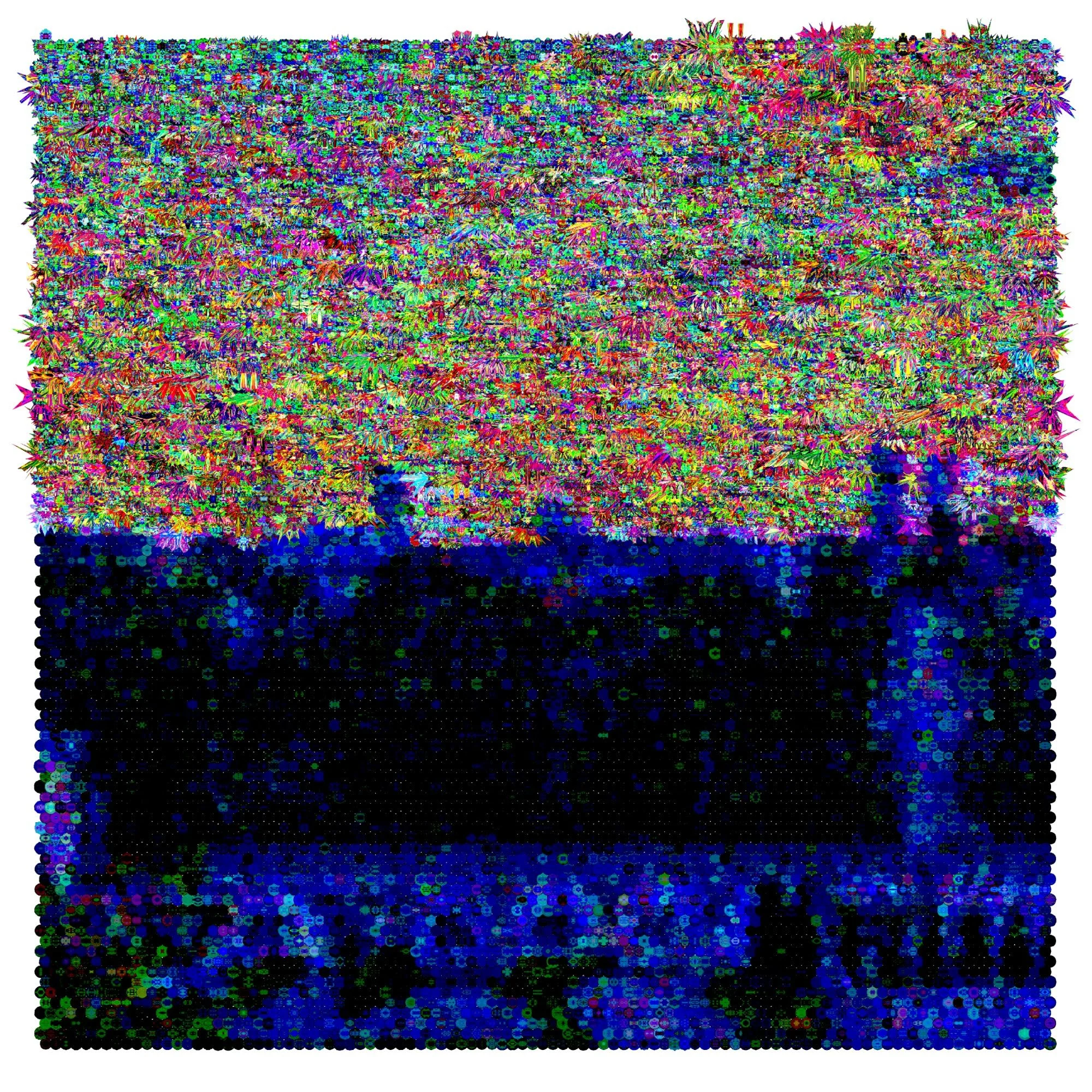 A work from a series that examines the sonification of images and the visualization of sound, using the possibilities of 3D environments.